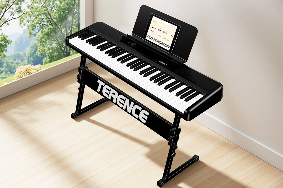 全新一代AI智能電子琴,專為初學者打造,沒有音樂基礎跟著APP學就能輕松上手,輕巧纖薄的琴身,采樣自三角鋼琴的音色和全新的音響系統,以及舒適的手感,給你更好的學琴體驗。