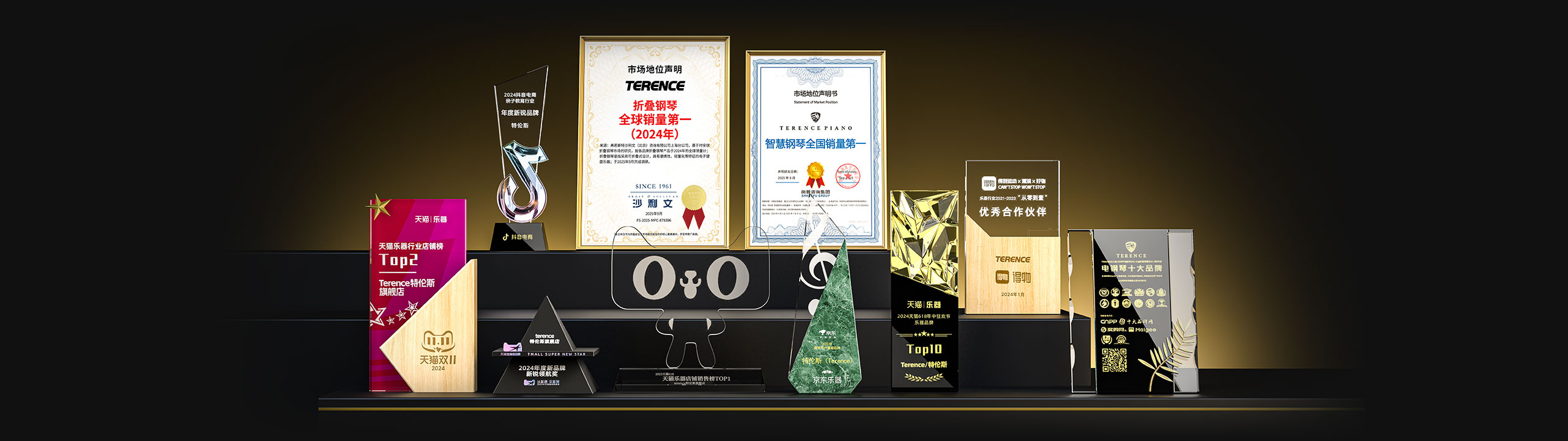 特倫斯創(chuàng)新科技榮獲:折疊鋼琴全球銷量第一(2024年)[1]、智慧鋼琴全國(guó)銷量第一[2]、2022年天貓樂(lè)器行業(yè)TOP1、2023年天貓618樂(lè)器行業(yè)TOP1、2024抖音電商年度新銳品牌、2024天貓樂(lè)器店鋪TOP2、2024天貓年度新品牌新銳領(lǐng)航獎(jiǎng)、2023年京東最受用戶喜愛(ài)品牌等獎(jiǎng)項(xiàng);